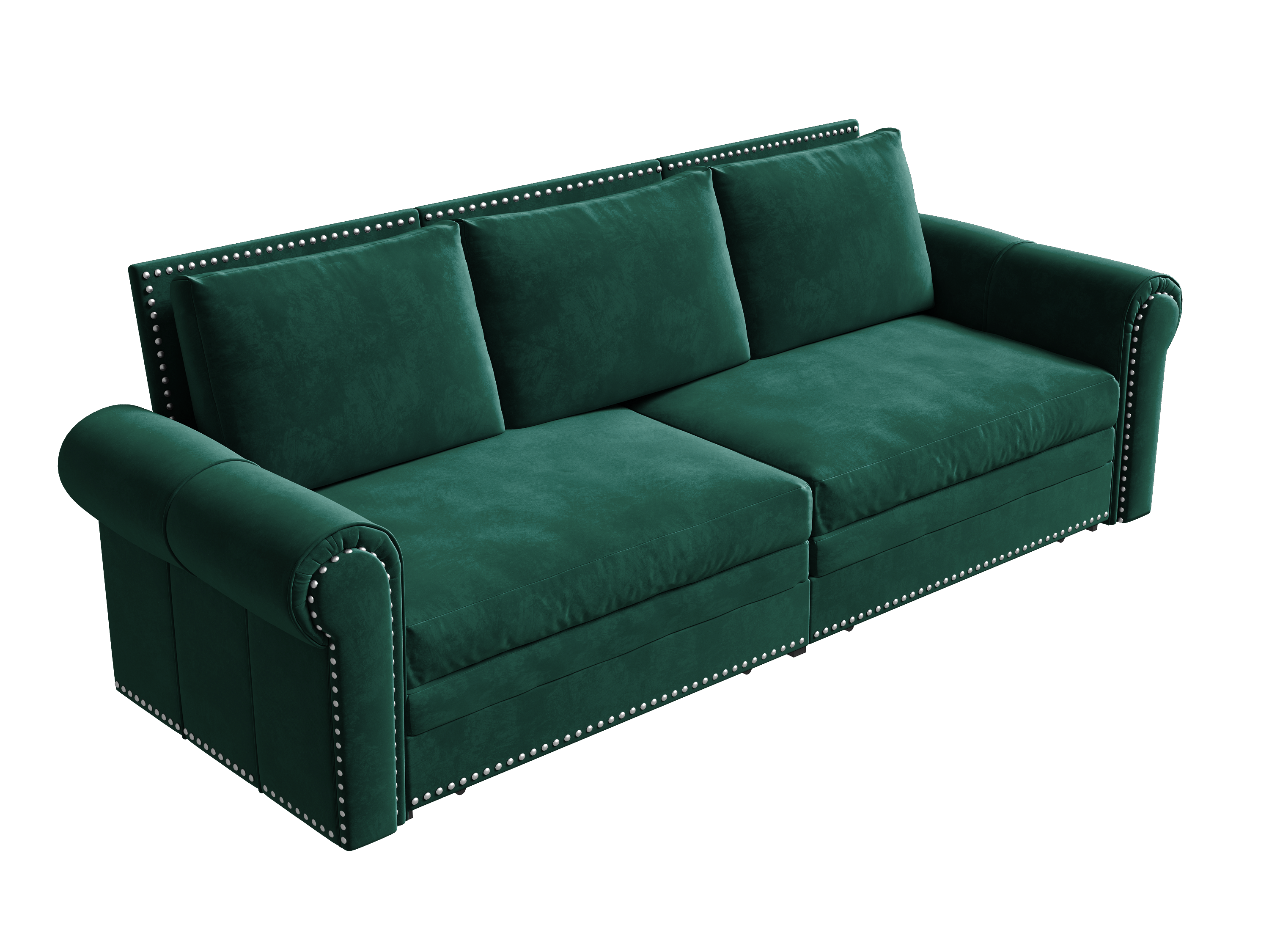 Chesterfield Sofa,93.7" King Pull Out Sofa Bed,3-in-1 Velvet Convertible Sleeper Sofa with Nailhead Trim & Rolled Arm,Multi-Functional Sofa Bed for Living Room,Bedroom,Green