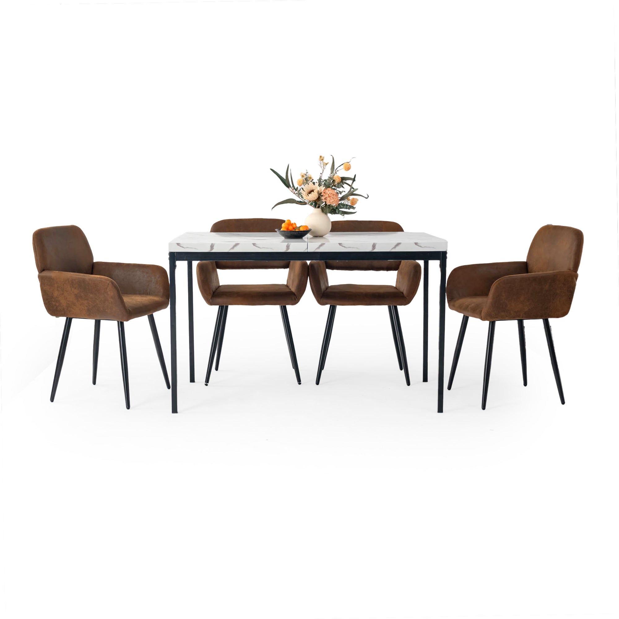 FurnitureR 47-Inch Rectangular Dining Table with Marble-Style Top, Modern Kitchen Table with Metal Legs for Dining Room Apartment