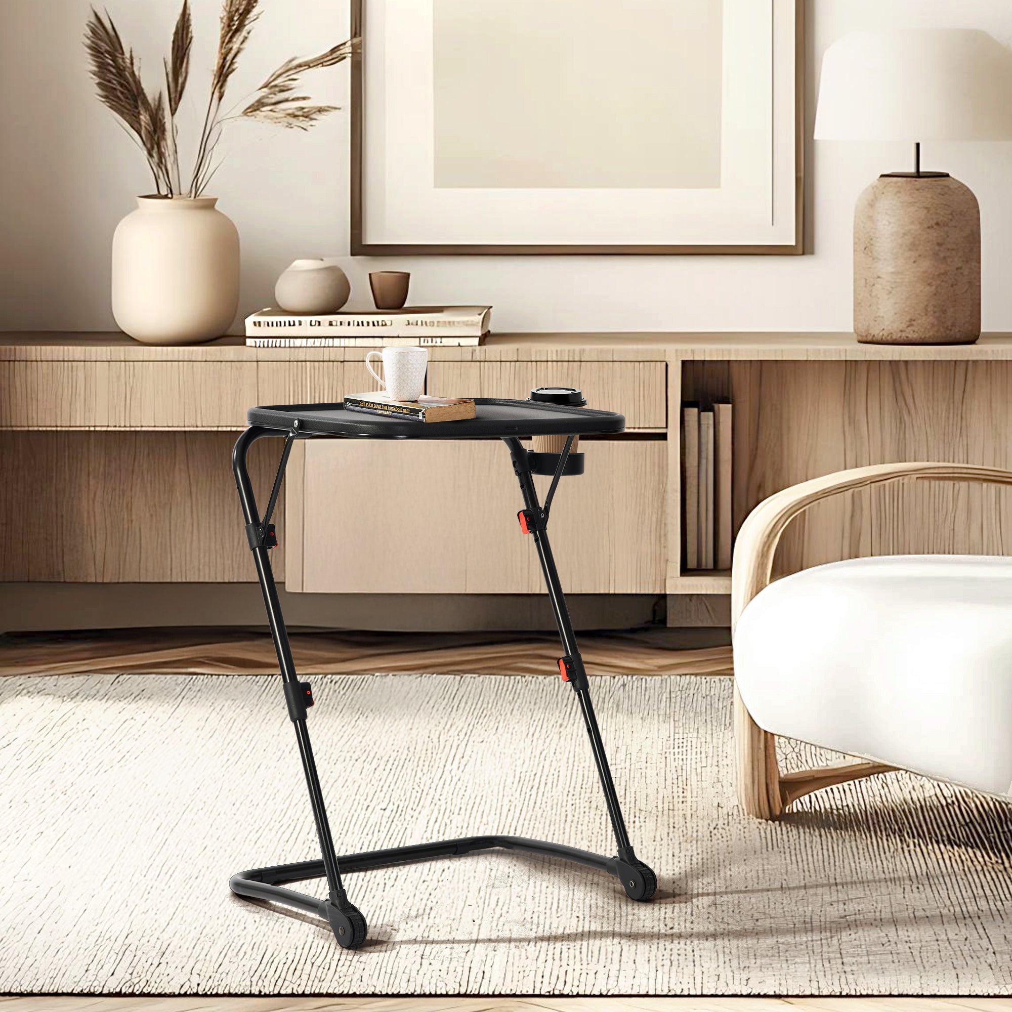 FurnitureR Adjustable Folding TV Tray Foldable Laptop Table Dinner Trays Snack Table with Cup Holder£¬ 4 Height & 3 Tilt Angle, Set of 2, Black