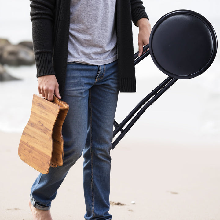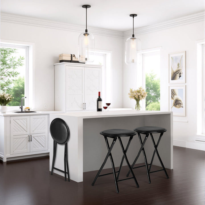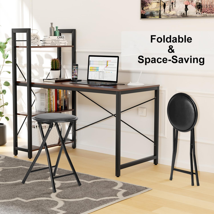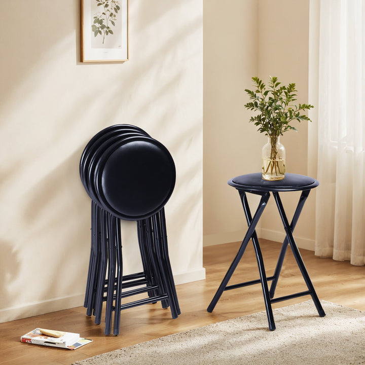 FurnitureR Folding Stools Set of 2, 18-Inch Backless Stool Chairs Collapsible Padded Round Portable for Indoor/Outdoor, Metal Frame, PVC Cushion