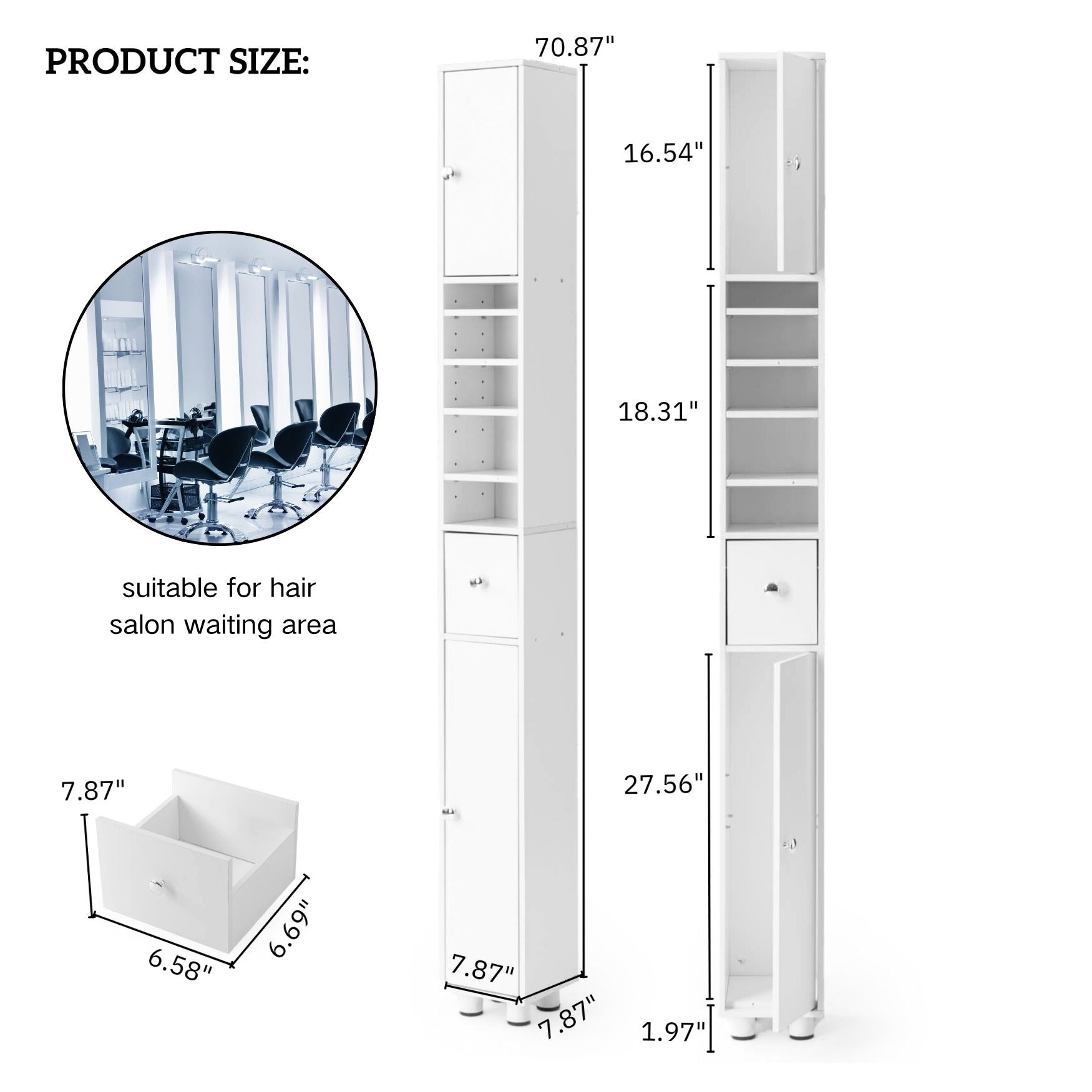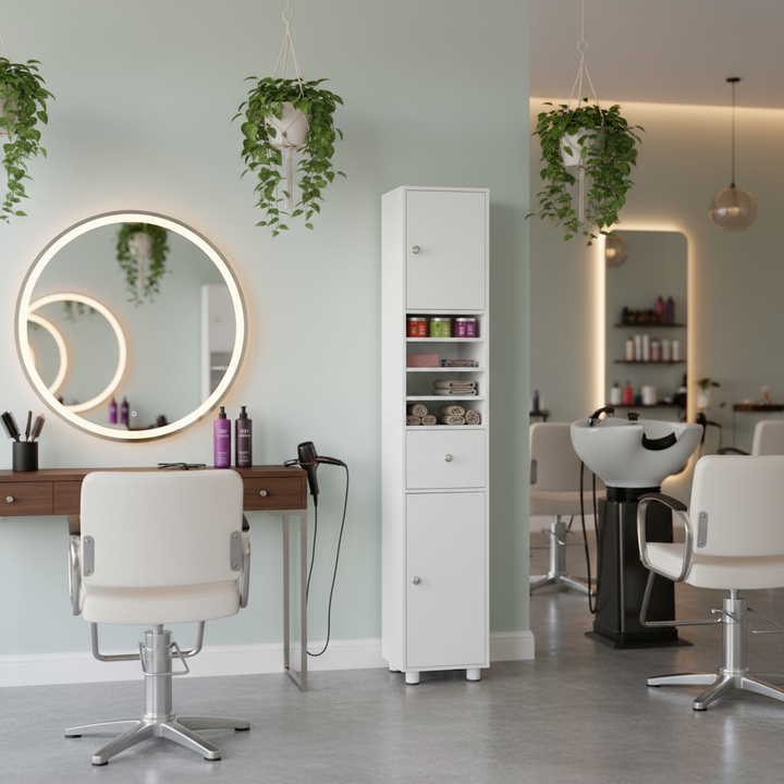 FurnitureR Slim Bathroom Storage Cabinet with 1 Drawer, 2 Doors & Adjustable Shelves, Freestanding Anti-Tipping Tall Cabinet for Small Spaces, White