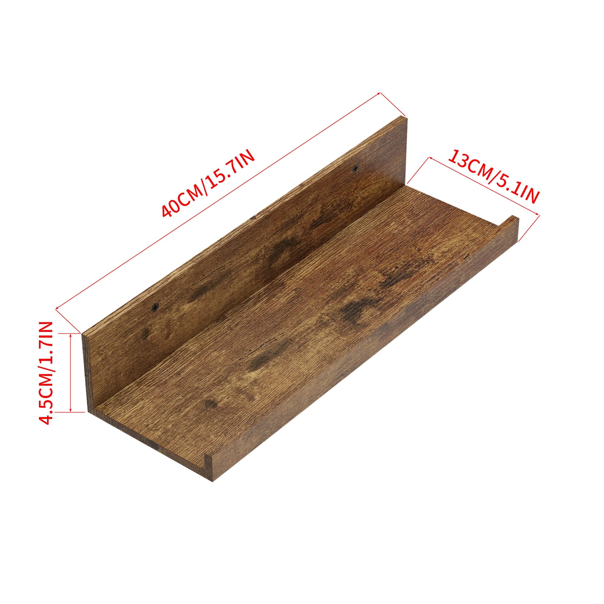 FurnitureR Wood Floating Shelves for Wall, 15.75 Inch Wide Rustic Wooden Floating Shelves, WallMounted Display for Living Room, Brown