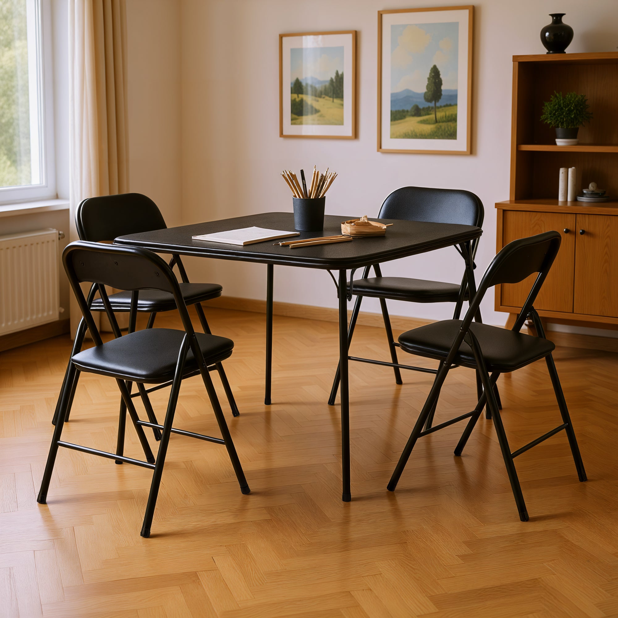 FurnitureR, mass 1PC Black Folding Dining Table, Modern Space-Saving Furniture, MDF & PVC Top with Matte Iron Frame, Ideal for Small Apartments, Easy Assembly, Durable Design