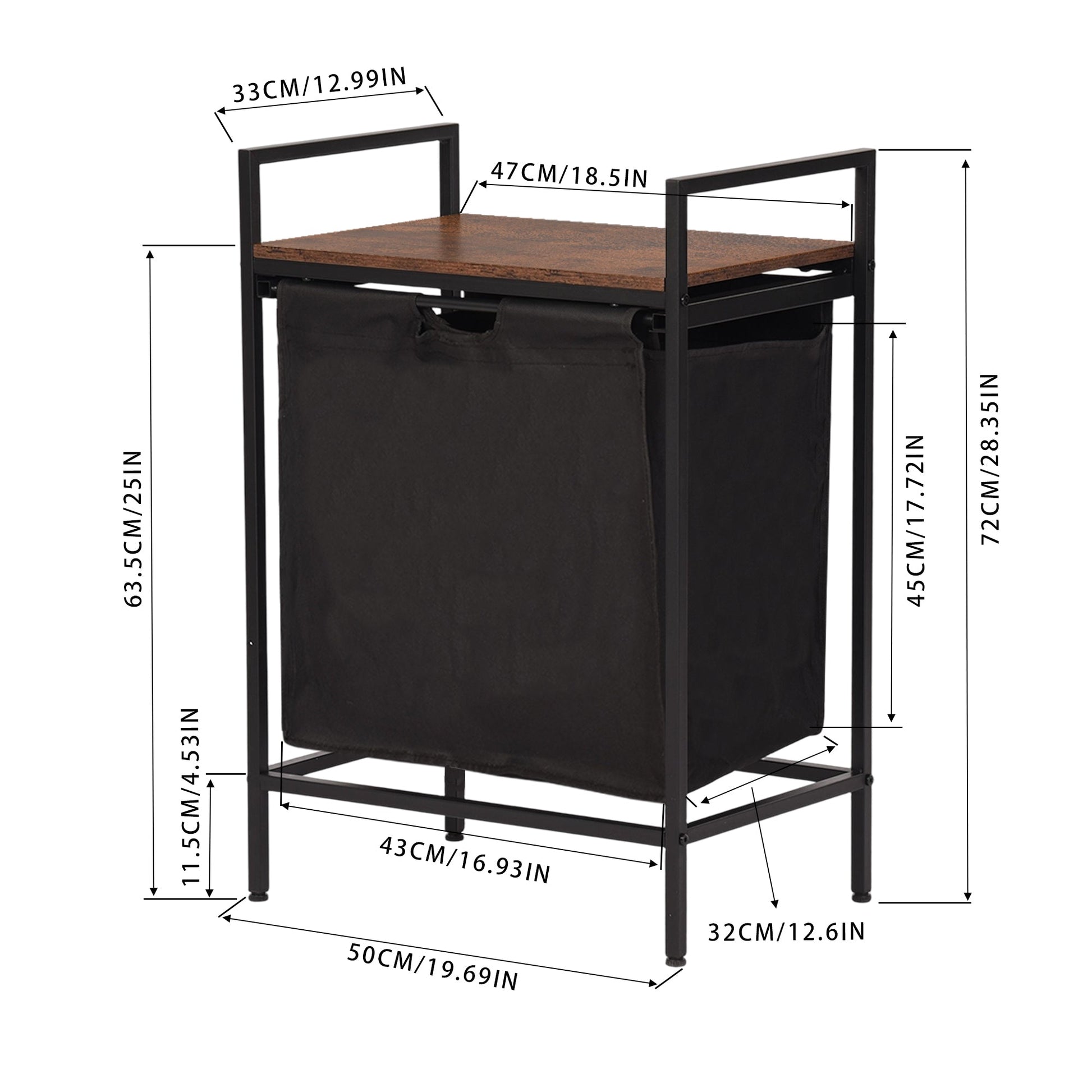 FurnitureR 19.69'' Laundry Hamper with Shelf, 1-Section Laundry Sorter with Removable Bag & Wooden Top, Wide Metal Frame Laundry Basket Brown/Black