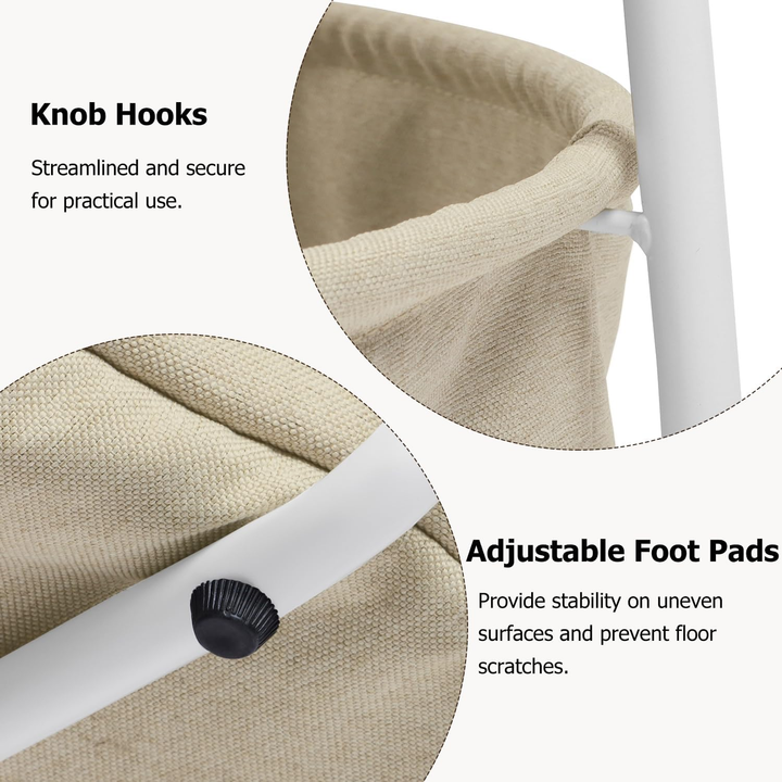 FurnitureR 2-Tier Round Coffee Table with Fabric Storage Basket, Modern 29.53-Inch Accent Center Table for Living Room Bedroom Office, White/Camel