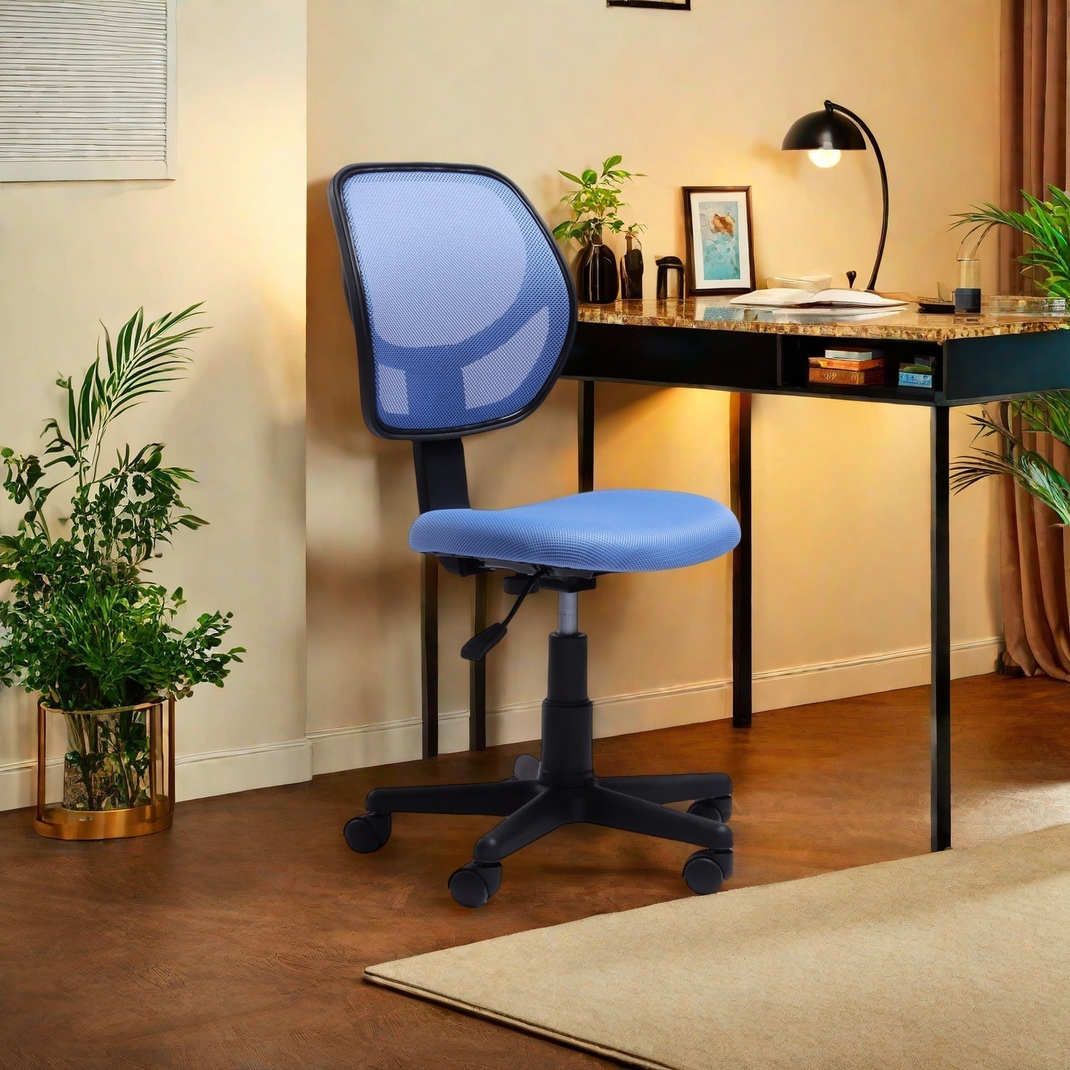 FurnitureR Desk Chair Mesh Armless, Ergonomic Adjustable Mid-Back Compact Rolling Swivel Computer Task Chair for Home Office Study Work, Blue