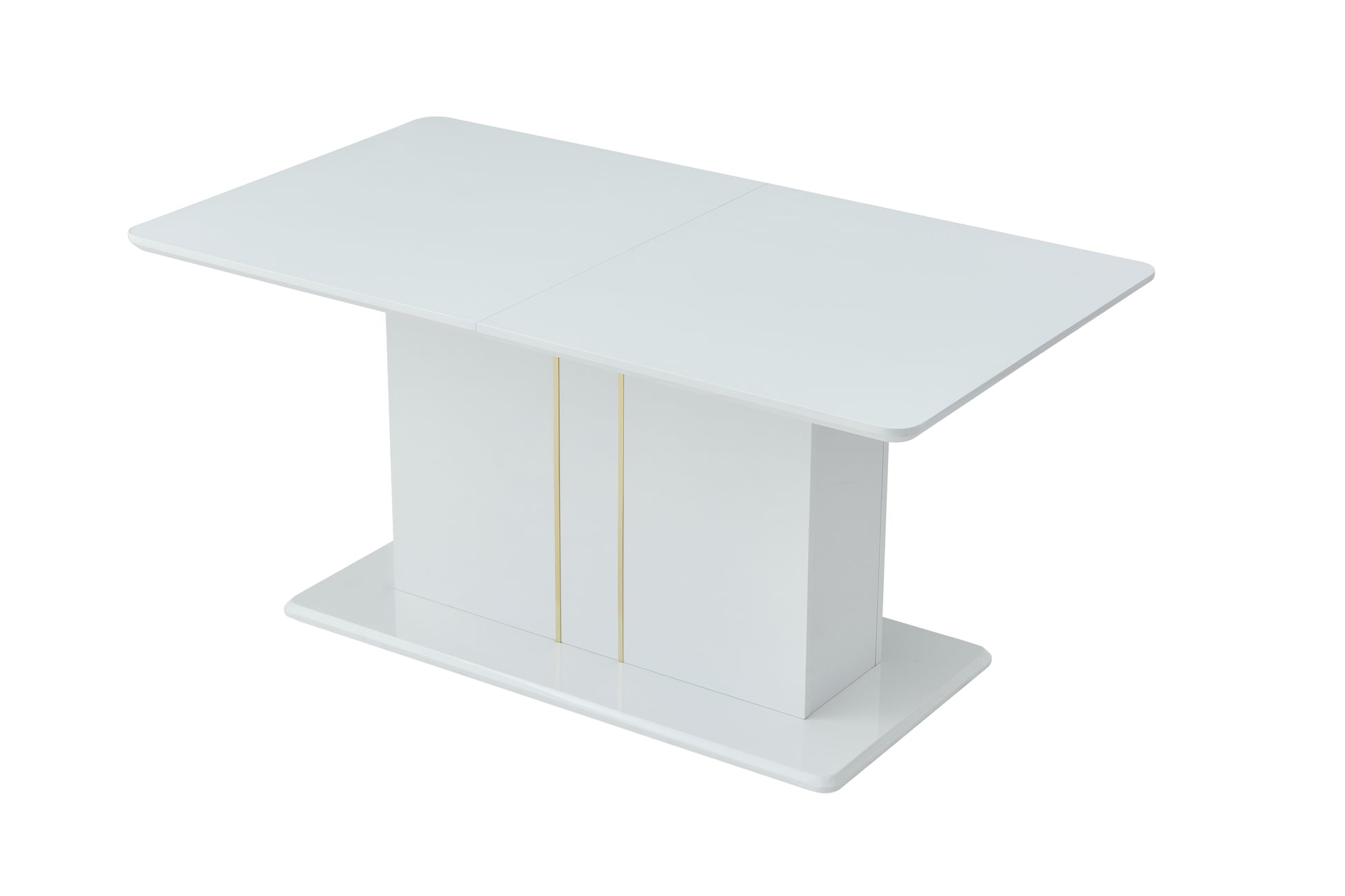 This FurnitureR extendable dining table is designed to adapt effortlessly to both everyday meals and special gatherings. Featuring a sleek glossy white tabletop and a contemporary pedestal base, it delivers a clean, modern look that elevates any dining space.