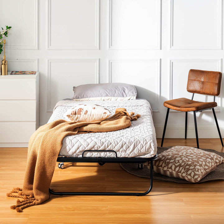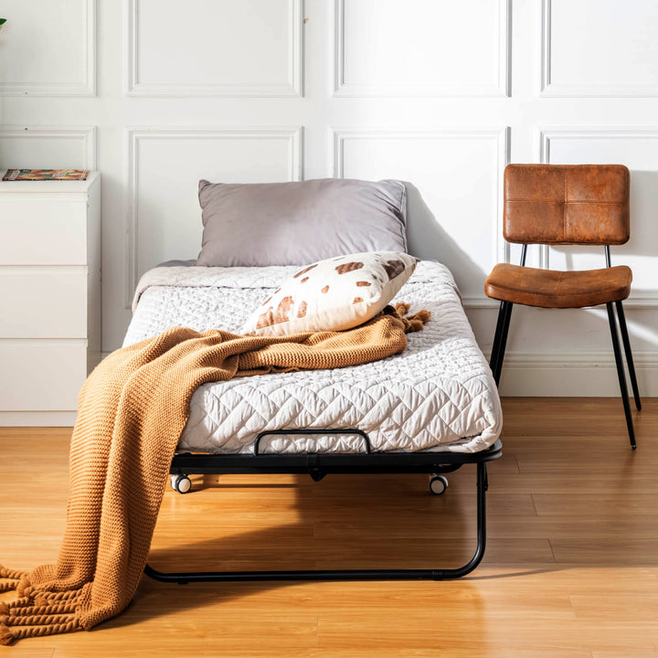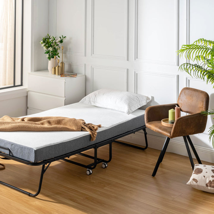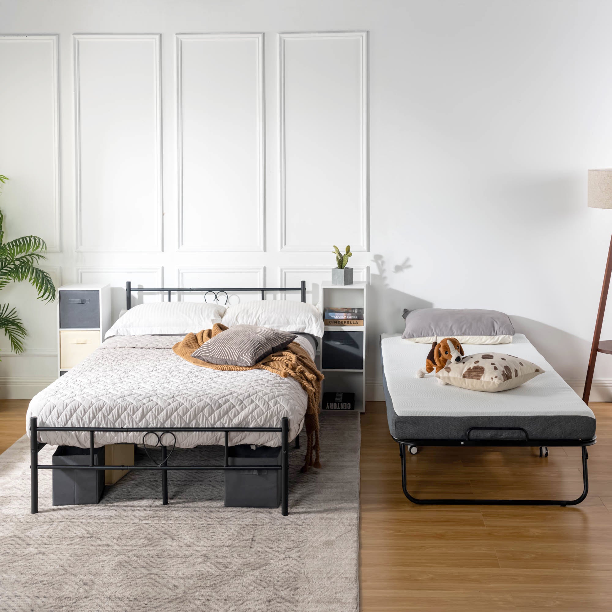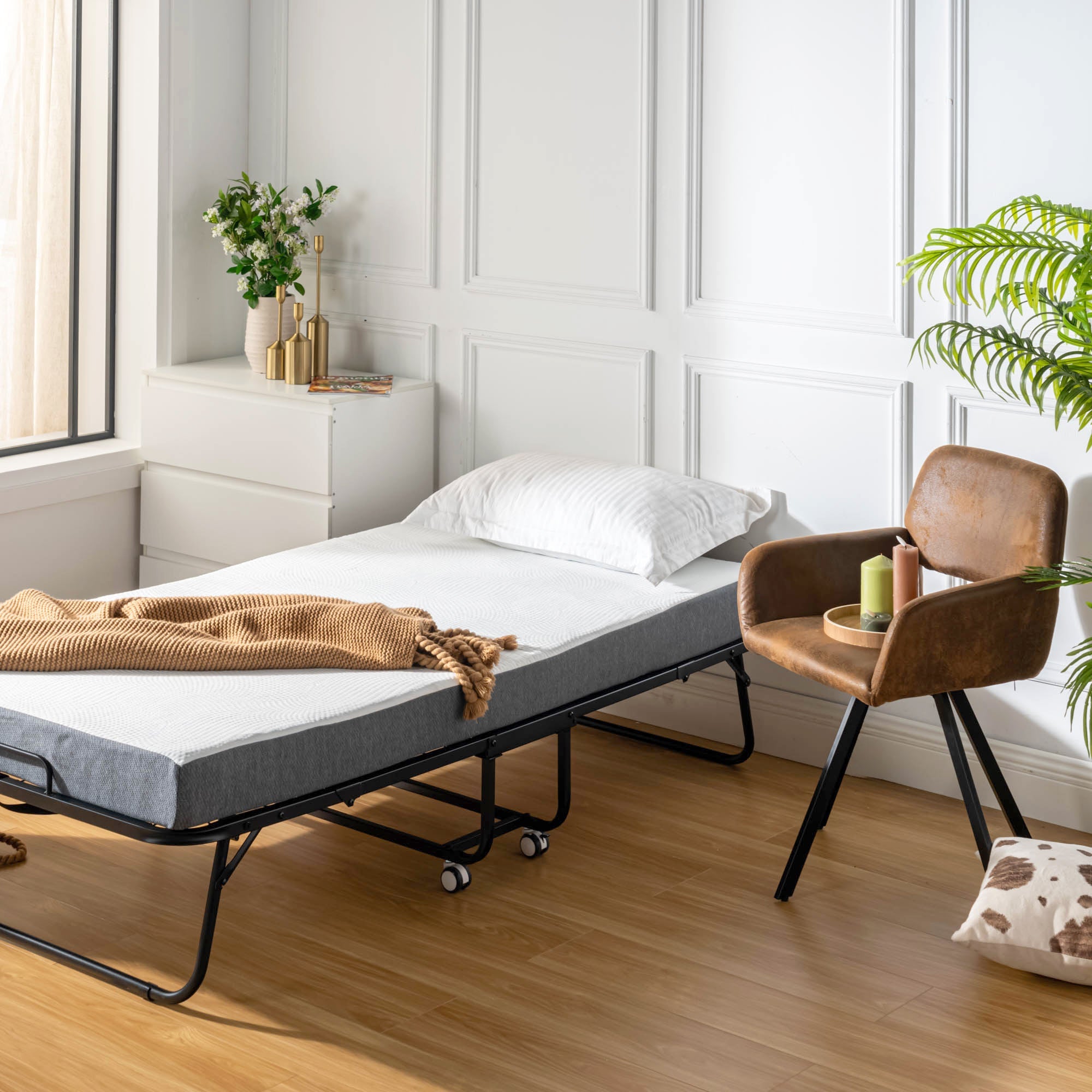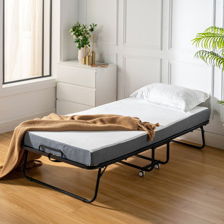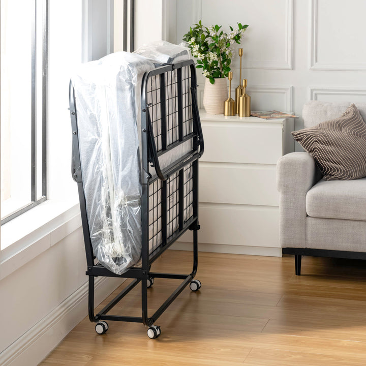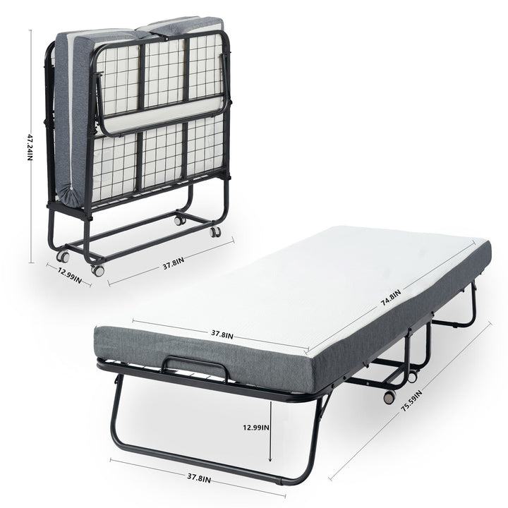 FurnitureR Folding Bed with 5-Inch Memory Foam Mattress ¨C Portable Rollaway Guest Bed with Wheels, Foldable Metal Frame for Adults, Sturdy