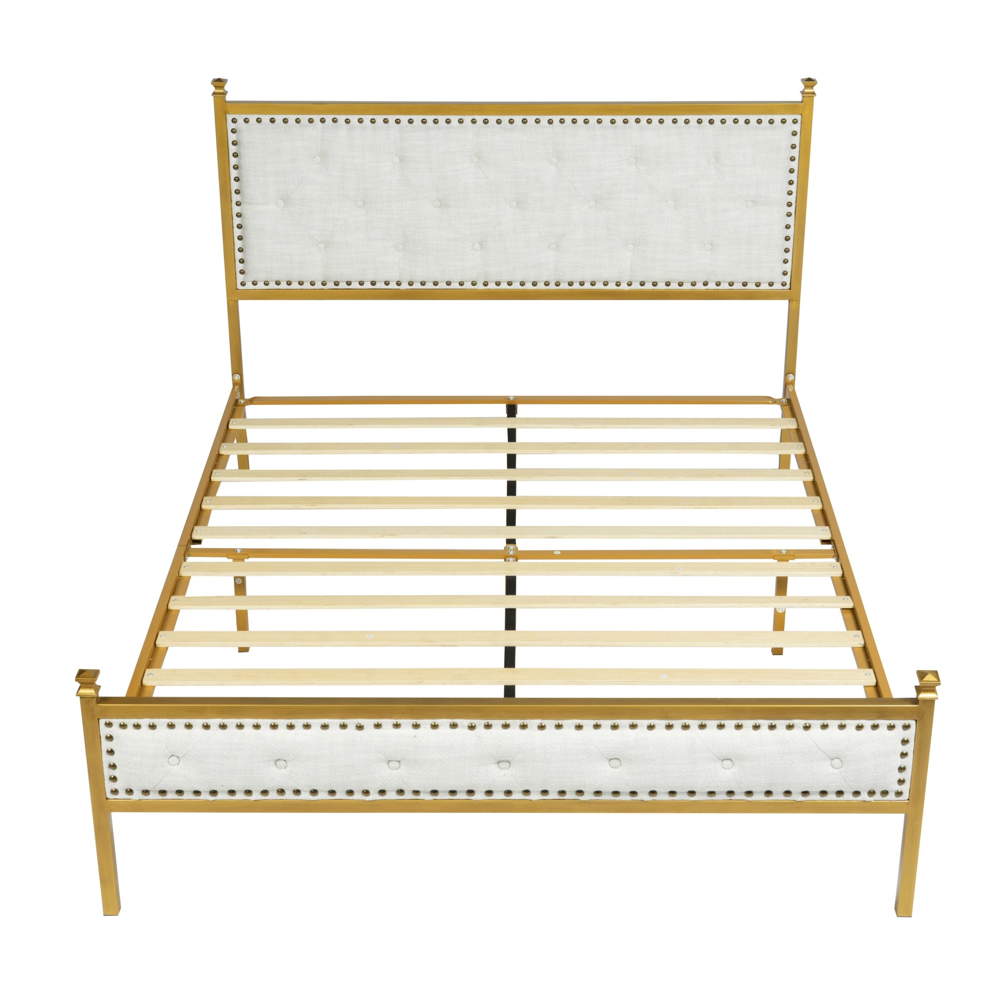 The FurnitureR Queen Size Upholstered Bed Frame combines timeless elegance with dependable support. Featuring a softly tufted fabric headboard framed with refined nailhead trim, this bed brings a warm and sophisticated look to any modern or transitional bedroom.