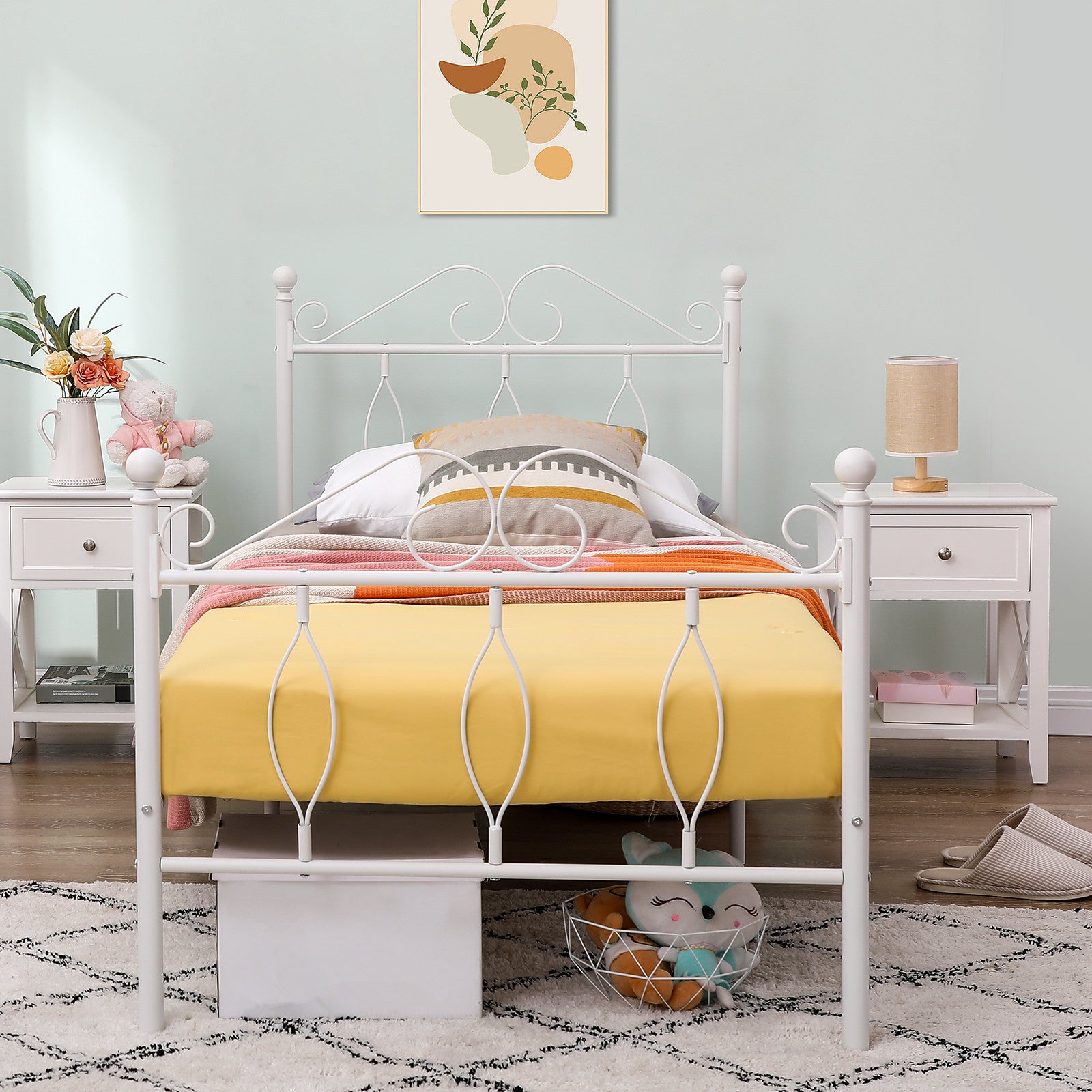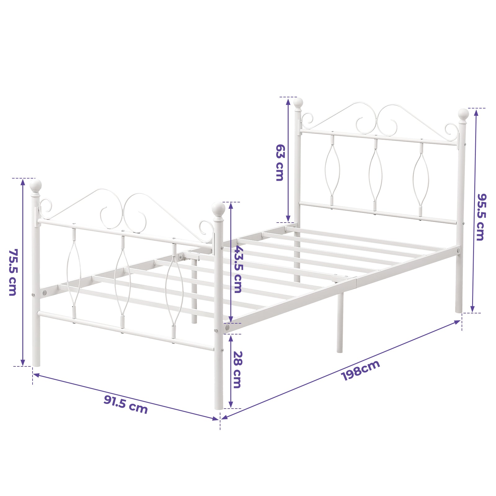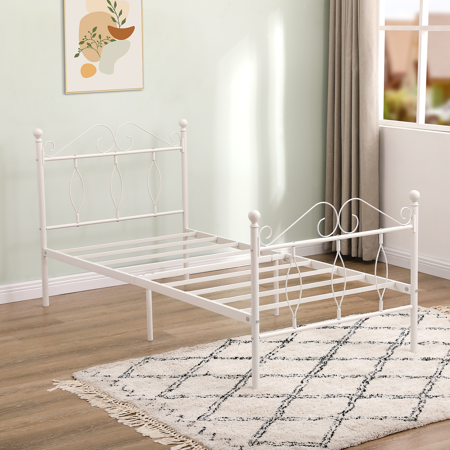 Weißes Metall-Einzelbettgestell, Lattenrost-Plattformbett, Einzelbettgestell ohne Boxspringbett, Kinderbettgestell mit Kopf- und Fußteil, klassisches Metall-Einzelbett, Bettgestell für kleine Zimmer/Studentenwohnheime, weißes Einzelbettgestell mit Stauraum, geräuschloser Einzelbettrahmen, einfach zu montierendes Metallbettgestell, Einzelbett-Plattformbett mit Stauraum unter dem Bett
