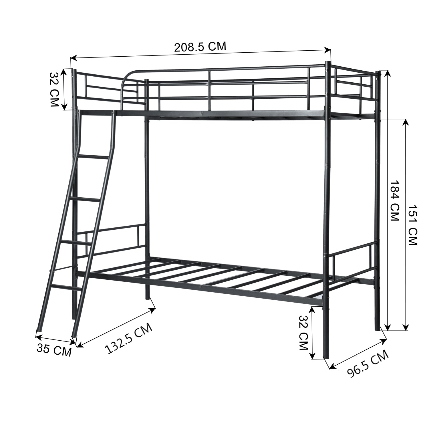 Optez pour un environnement ordonné et fonctionnel avec ce lit superposé moderne et élégant. Conçu pour garantir à la fois le confort et la durabilité, ce lit est idéal pour les foyers cherchant à optimiser l'espace. Son cadre métallique noir assure robustesse et longévité, tout en ajoutant une touche moderne à votre intérieur. Dimensions du produit: Longueur: 208.5cm Largeur: 96.5cm Hauteur: 184cm Ce lit est parfait pour les chambres d’enfants, les dortoirs ou les logements où l’espace est précieux. Son design compact permet de libérer davantage d’espace au sol tout en offrant un couchage sécurisé grâce à sa barrière de protection sur le niveau supérieur. Facile à assembler, cet ensemble ne requiert qu’un minimum d’outils pour la mise en place, assurant une installation rapide et sans tracas. Sa finition en métal noir apporte un style contemporain qui s’harmonise avec différents types de décoration intérieure. L’entretien est simple, avec un nettoyage minimal requis pour maintenir l’apparence fraîche et neuve du produit. Profitez d'une solution de couchage élégante et pratique qui favorise un style de vie organisé et sans encombrement.