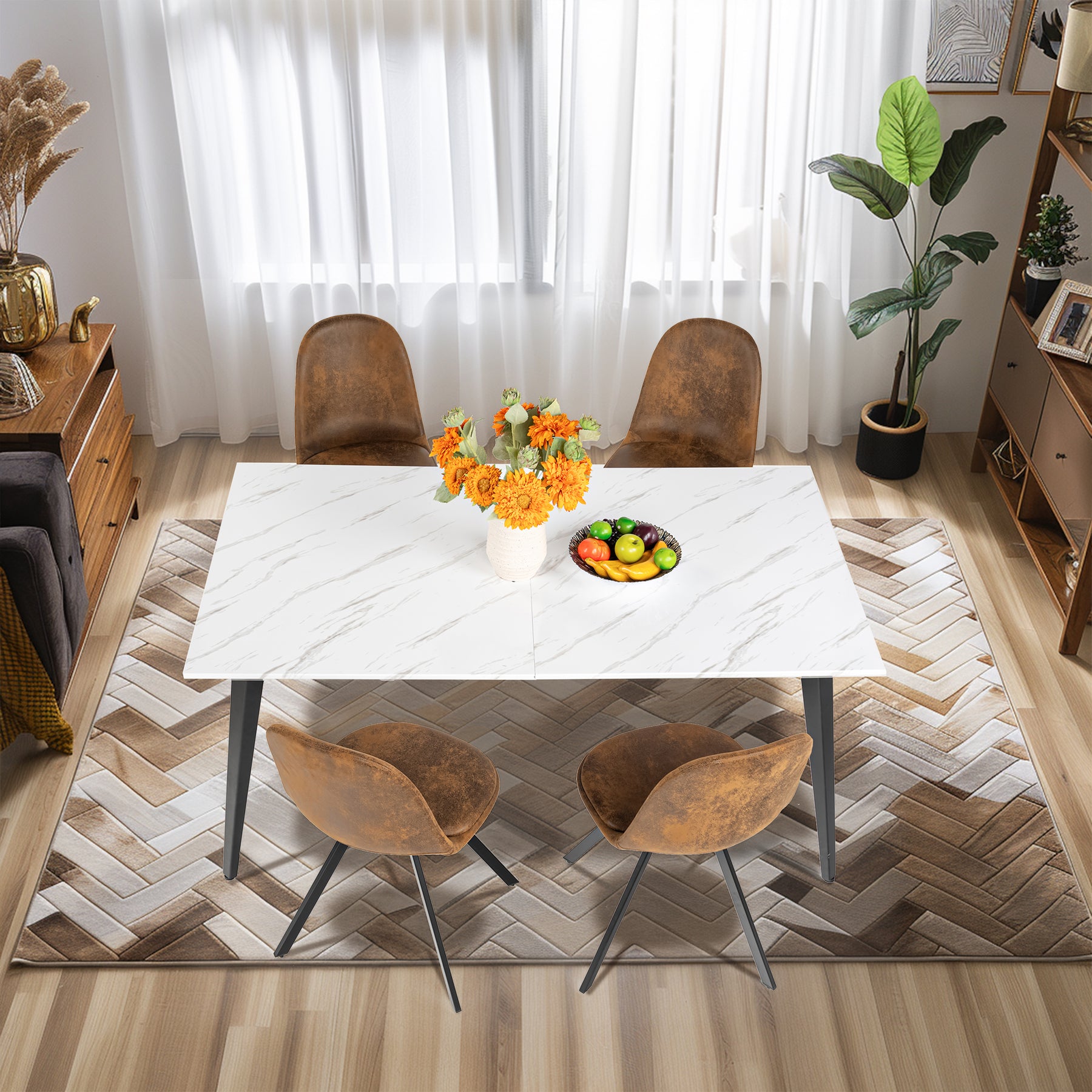 - 【Style Rétro】Le plateau marron de cette table de salle à manger est lisse et plat, facile à nettoyer et à entretenir. Le fond de la table de salle à manger présente également un design à bord biseauté pour éviter les rayures et l'usure.
