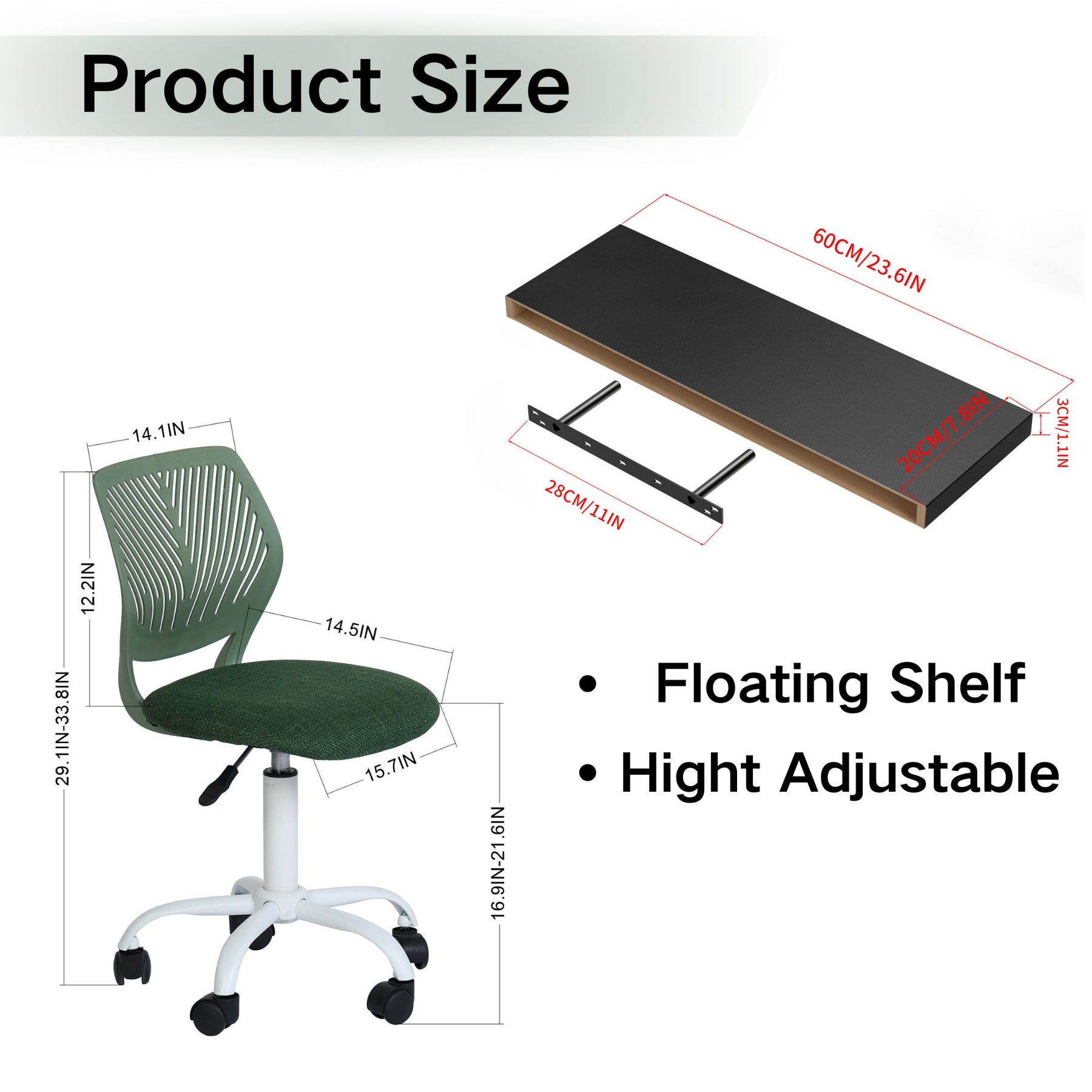 Optimisez votre bureau ou votre coin lecture avec l' ensemble bureau pliant 3 pièces FurnitureR , alliant design moderne et fonctionnalité. Le bureau pliant s'ouvre et se ferme sans effort, idéal pour les petits appartements ou les espaces de travail modulables. Son plateau en MDF noir et sa structure en métal lui confèrent stabilité et élégance. La chaise pivotante ergonomique est dotée d'un dossier respirant et d'une hauteur réglable pour un confort personnalisé, tandis que les deux étagères murales offrent un espace de rangement vertical pour vos livres, plantes et autres objets. L'ensemble forme un agencement épuré et organisé qui optimise l'espace et embellit votre intérieur moderne.