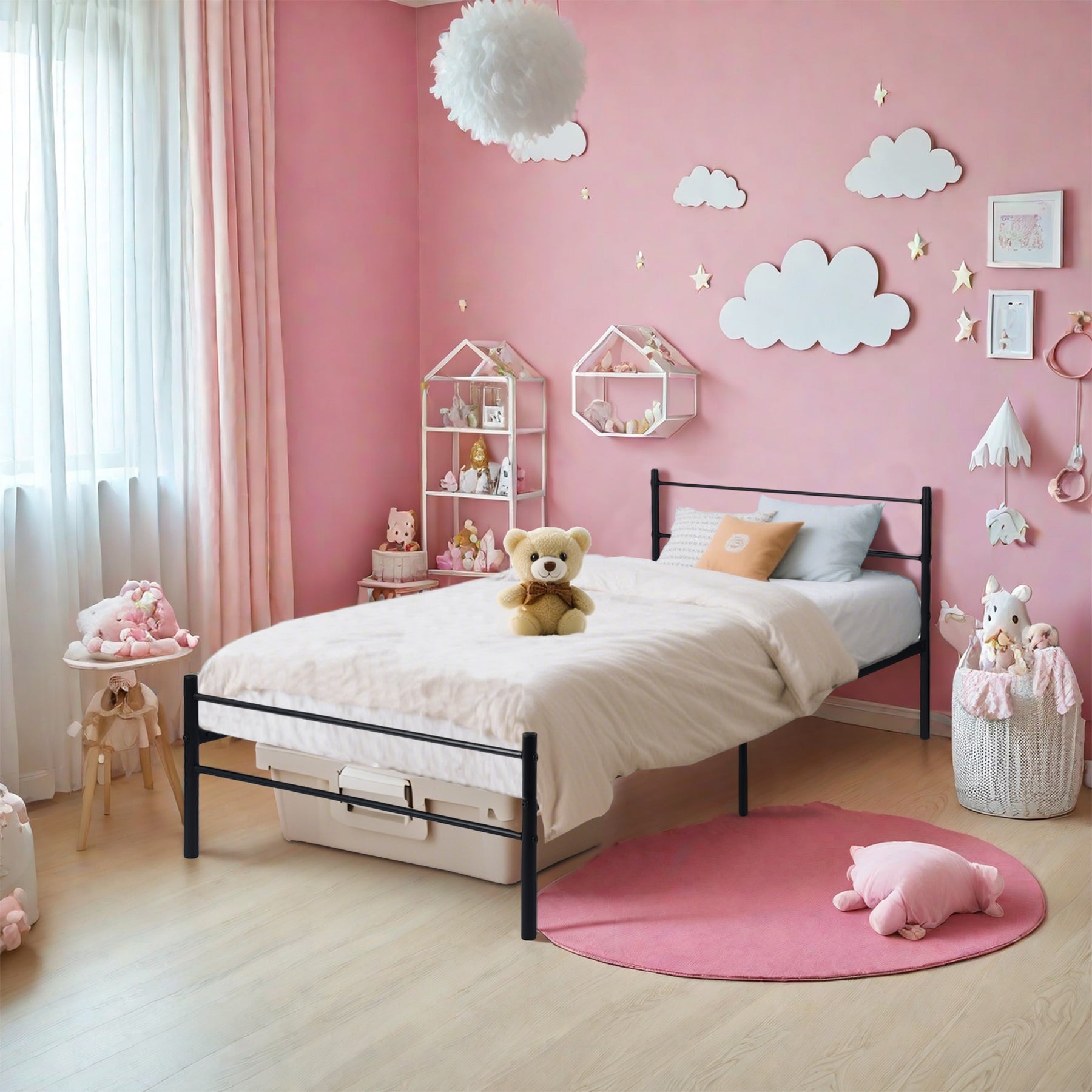 Confort optimal : Ce cadre de lit simple en métal noir offre une structure robuste et stable, idéale pour garantir des nuits sereines. Sa conception moderne s’adapte naturellement à tout environnement de chambre à coucher contemporaine.